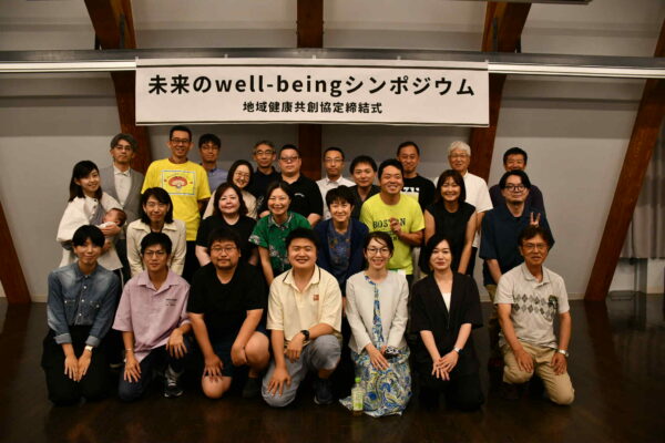 今回のプロジェクト開始にあたっては、岩手県紫波町、一般社団法人関西へルスケアサイエンスインフォマティクス、医療法人社団やまと、一般社団法人みんなの健康らぼ、一般社団法人くらしの研究室、国立大学法人京都大学(研究担当者:大学院医学研究科社会疫学分野 教授 兼 社会的インパクト評価学講座 運営委員長 近藤尚己)、国立大学法人秋田大学(大学院医学系研究科 医学専攻 社会環境医学系 先進デジタル医学・医療教育学講座 特任教授 及川沙耶佳)の間で「紫波町地域健康共創協定」が締結され、その締結式も行われました。