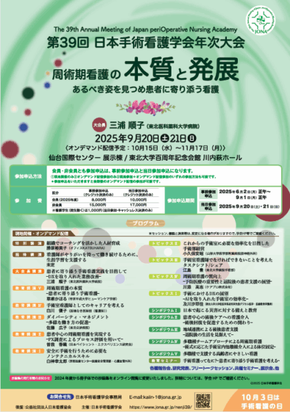 令和7年9月20日、仙台国際センターで開催された第39回日本手術看護学会年次大会に参加いたしました。