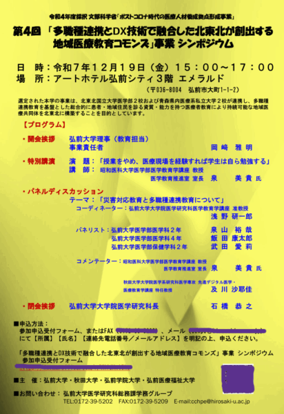 令和7年12月19日、弘前市で開催された第4回「多職種連携とDX技術で融合した北東北が創出する地域医療教育コモンズ」事業シンポジウムに参加いたしました