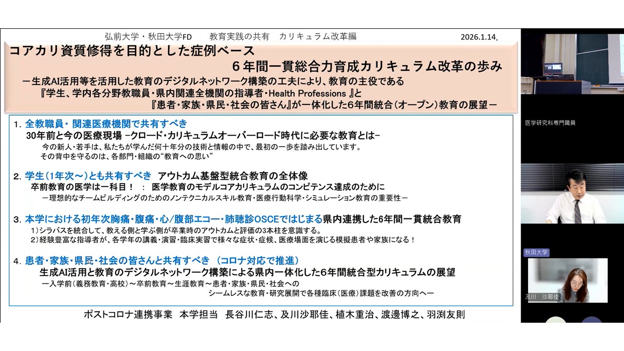 下記のとおり弘前大学・秋田大学合同FDを開催しました。