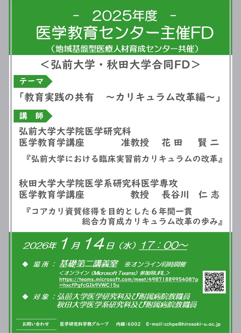 下記のとおり弘前大学・秋田大学合同FDを開催しました。